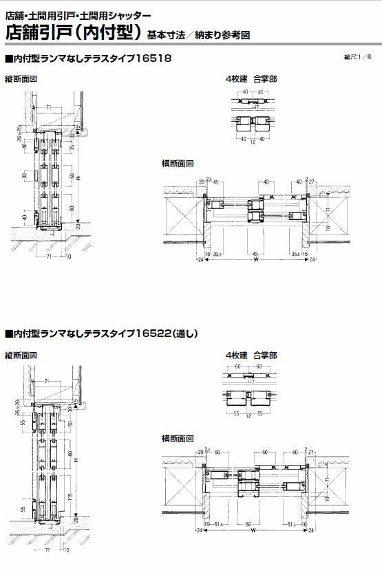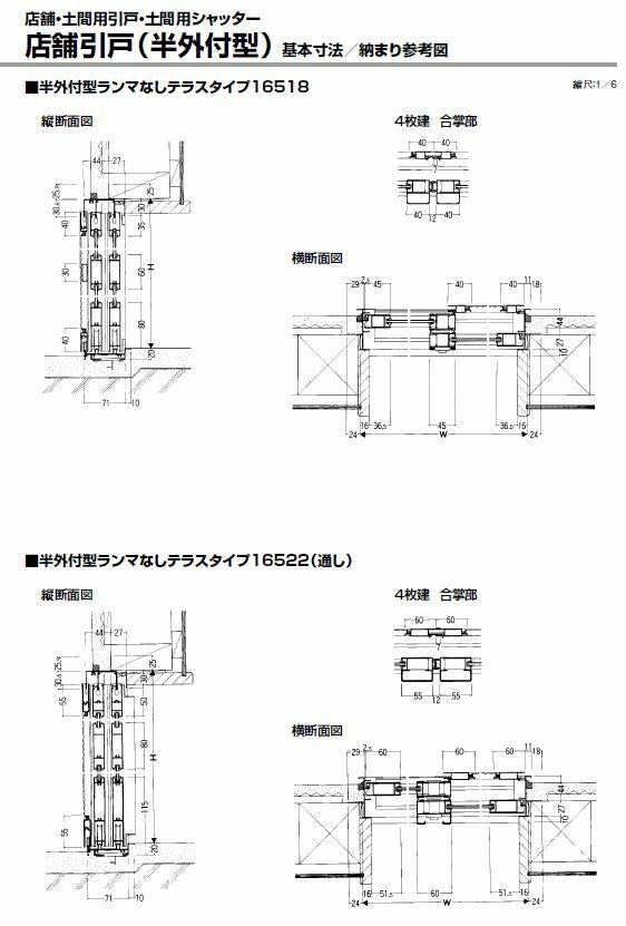 店舗引戸 半外付型 寸法一覧※ご希望の寸法の型番をクリックしてください。
