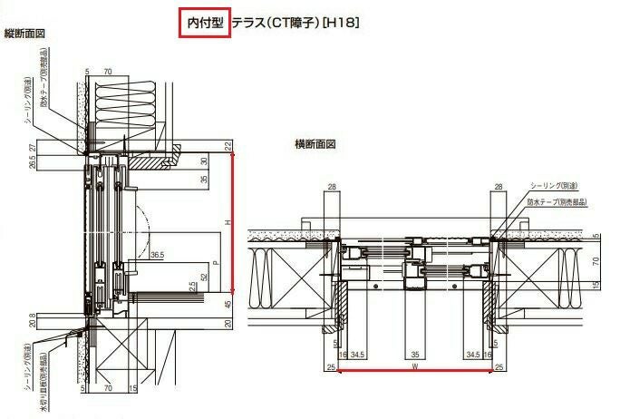 ATU内付引違い テラス 寸法一覧※ご希望の寸法の型番をクリックしてください。