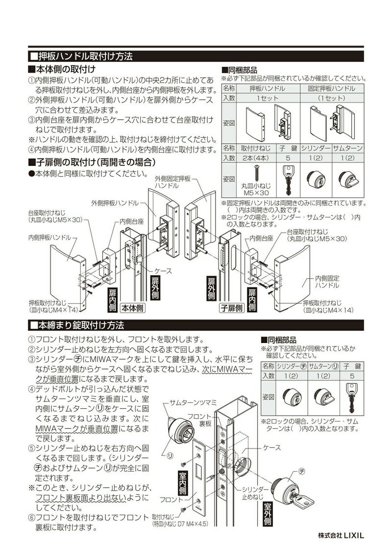 ●ドア枠、握り玉、バーハンドル、押し板、鍵(シリンダー)、ドアクローザーは現場にてセットするようお願いします。