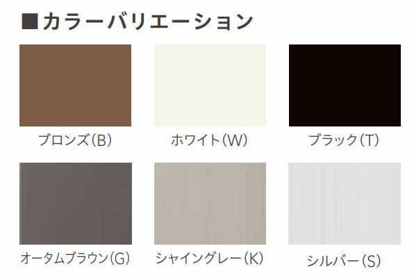 内付型と半外付型、それぞれブロンズ、ホワイト、シルバー、ブラック、オータムブラウン、シャイングレーの6色を用意しています。