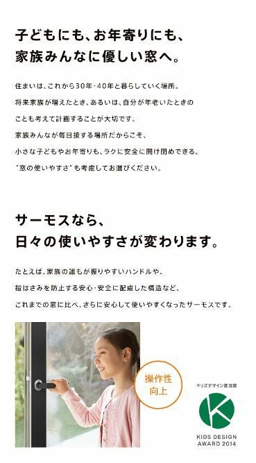 外気温に左右されにくく健康で快適な室内環境の実現に貢献し、住まいの快適性・省エネ性をさらに一歩進めながら、スリムなフレームデザインで光や風、美しい景色をもっと身近に感じられる窓という点が評価されました。