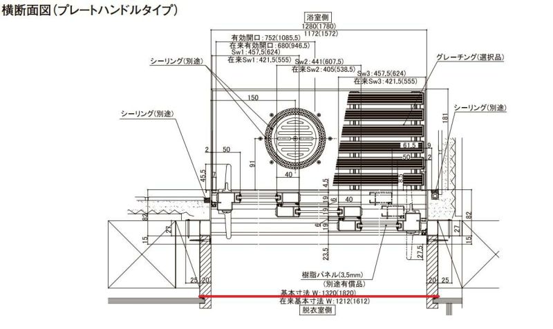 浴室引戸 アルミサッシ ドア本体3枚・枠セット 浴室用 LIXIL リクシル トステム TOSTEM リフォーム DIY 送料無料 浴室3枚引戸 プレートハンドル 1618 W1612 × H1818 浴室引戸 風呂扉 LIXIL リクシル トステム