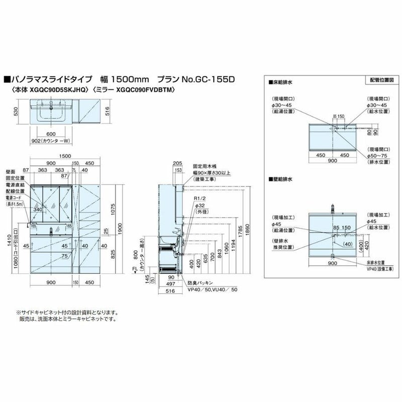 パナソニック Panasonic 洗面台 シーライン GC-155D パノラマスライドタイプ 幅:900 XGQC90D5SKJHW XGQC090FVDBTM ホワイト