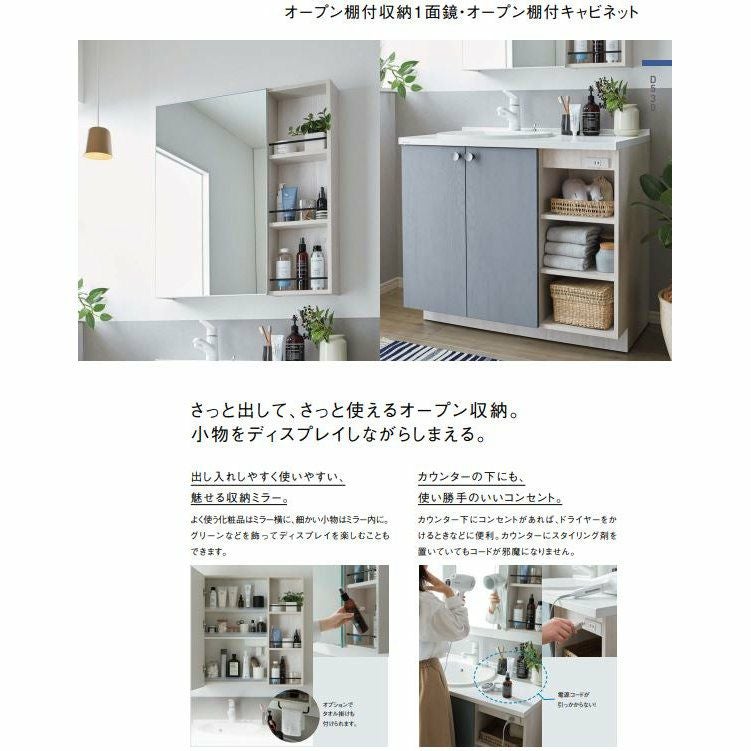 ■ ミラー:オープン棚付収納1面鏡(照明なし)くもりシャットなし 750mm