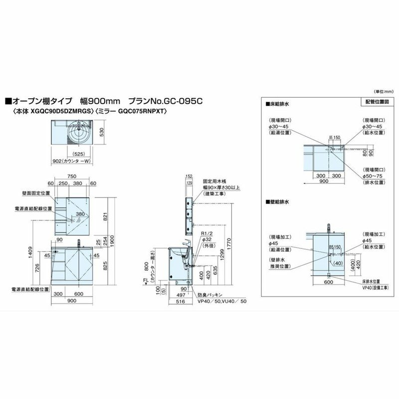 パナソニック Panasonic 洗面台 シーライン GC-095C オープン棚タイプ 抗菌加工 幅:900mm XGQC90D5DZMRHW GQC075LNPHW ホワイト