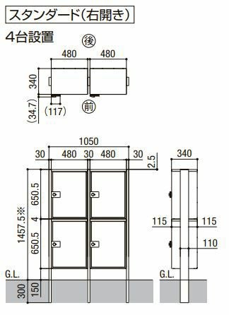 宅配ボックスKT ポール仕様 スタンダード 高さ1457.5mm 本体480×650.5×340mm 2段(4台)ポスト LIXIL トステム TOSTM