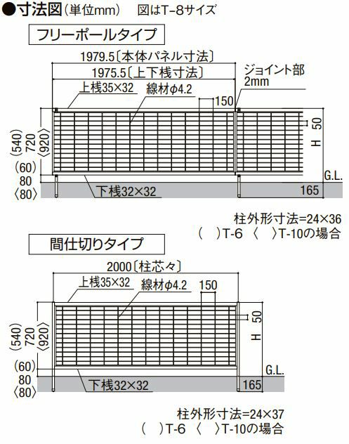 アルメッシュフェンス2型 間仕切りタイプ T-8 本体 2000 × 800mm フェンス LIXIL トステム