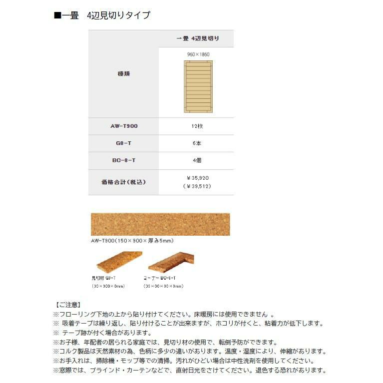 東亜コルク トッパーコルク topacork 1畳 +見切り材 AW-T900(12枚) G8-T(6本) BC-8-T(4個) コルク 床材 DIY 子供部屋 ペットマット キッチンマット
