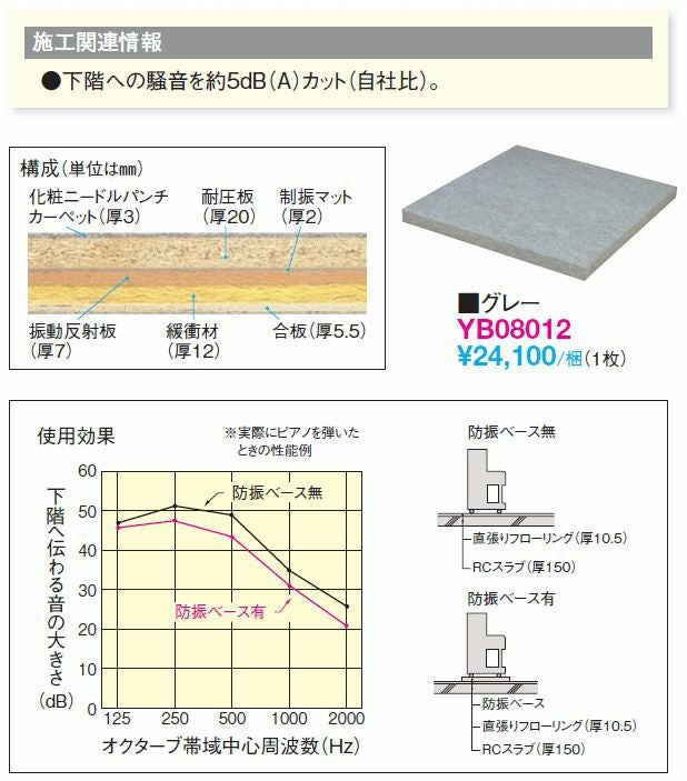 大建工業 DAIKEN 防振ベース マンション用 防音 簡易敷台 YB08012 グレー 1枚 防音マット